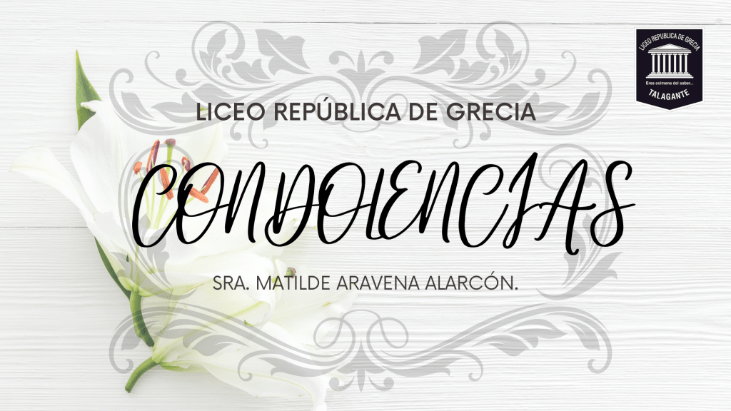 Ricardo Gutiérrez Rivillo, Director del Liceo República de Grecia y el Equipo de Educadores, se unen al dolor por el sensible fallecimiento de nuestra ex docente: