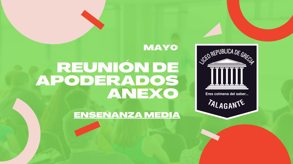 ¡Atención apoderados de ENSEÑANZA MEDIA! Se cita a reunión de apoderados para este miércoles 31 de mayo a las 18:00hrs. En SEDE ANEXO: Bernardo O’Higgins 1187, Talagante.