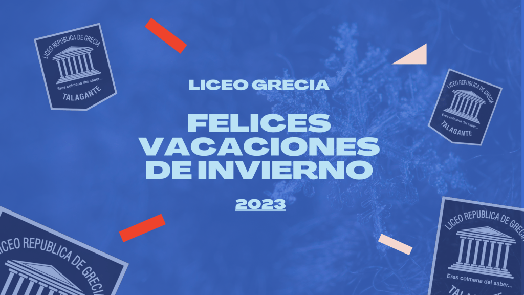 La comunidad educativa del Liceo República de Grecia, en sus ambas sedes, les desea unas excelentes vacaciones de invierno. Aprovechen este momento para descansar y renovar energías para el segundo periodo del año.