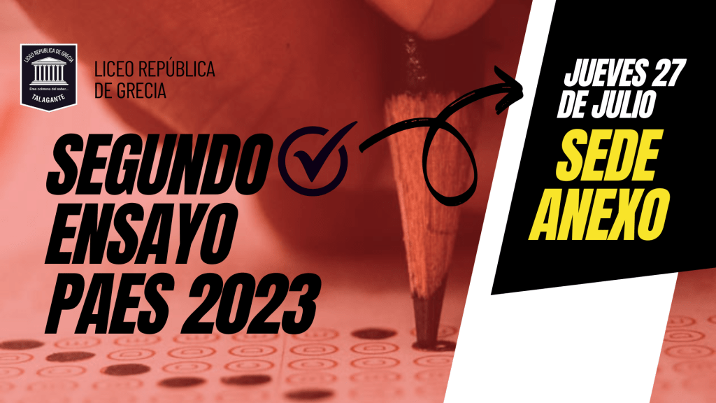 Este jueves 27 de julio se realizará el SEGUNDO ensayo PAES del año en nuestra sede anexo para los cuartos medios. La asistencia a esta actividad es obligatoria.