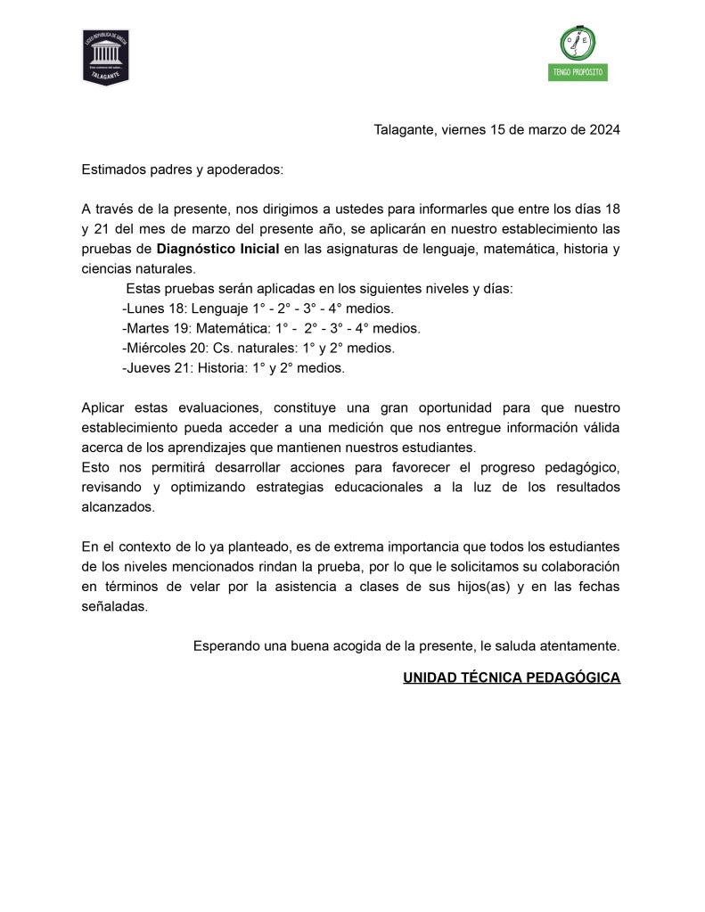 Circular para la aplicación de los diagnósticos – SEDE ANEXO:
