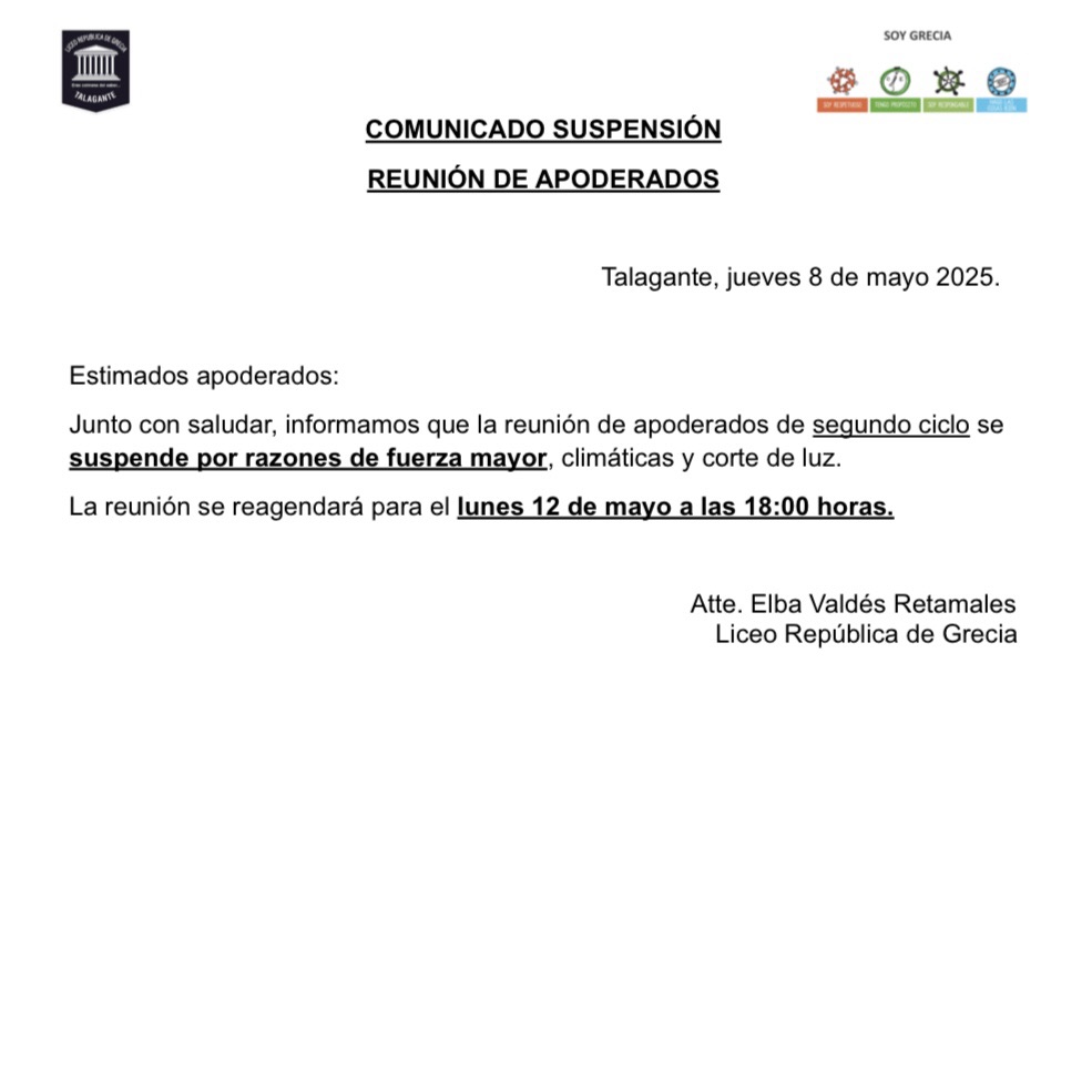 ¡IMPORTANTE! Suspensión de reunión de apoderados (SEGUNDO CICLO)