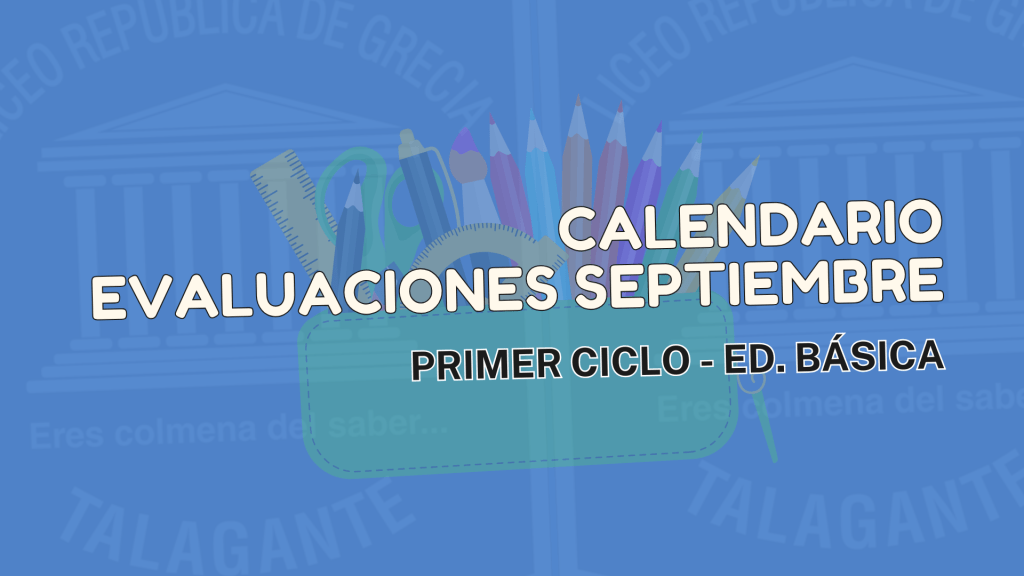 Junto con saludarlos, compartimos con ustedes el calendario de evaluaciones (PRIMER CICLO) por curso correspondiente al mes de SEPTIEMBRE. Te invitamos a pinchar el botón, o visitar nuestra pestaña de «Educación básica» para descargar el archivo:
