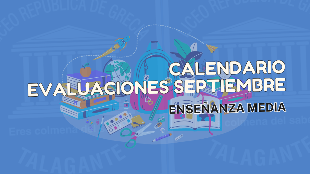 Junto con saludarlos, compartimos con ustedes el calendario de evaluaciones por curso correspondiente al mes de SEPTIEMBRE. Te invitamos a pinchar el botón, o visitar nuestra pestaña de «Enseñanza media» para descargar el archivo:
