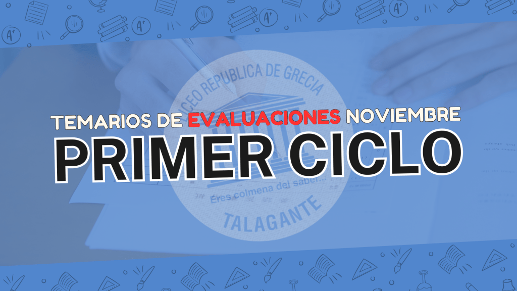 Junto con saludarlos, compartimos con ustedes los TEMARRIOS de evaluaciones (PRIMER CICLO) por curso correspondiente al mes de NOVIEMBRE. Te invitamos a pinchar el botón, o visitar nuestra pestaña de «Educación básica» para descargar el archivo: